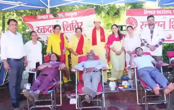 पंचकूला 18 जुलाई 2022। गर्मियों व बारिश के चलते अस्पतालों में आई रक्त (Blood Donars) की कमी को पूरा करने हेतु विश्वास फाउंडेशन ने आज सोमवार को नैशनल हेल्थ मिशन सेक्टर 2 पंचकूला के बाहर ब्लड डोनेशन कैंप लगाया। शिविर में इंडियन रेडक्रॉस सोसाइटी जिला शाखा पंचकूला ने भी सहयोग किया। शिविर सुबह 10 बजे हुआ और दोपहर बाद 3 बजे तक चला। इस कैंप का उद्देश्य ब्लड डोनेशन के प्रति लोगों में जागरूकता बढ़ाना था। इसी उद्देश्य से फाउंडेशन समय समय पर विभिन्न संस्थानों के सहयोग से ऐसे कैंप लगा रही है।