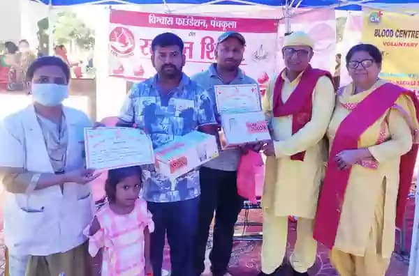 पंचकूला 12 जून 2022। विश्वास फाउंडेशन, श्री माता मनसा देवी श्राइन बोर्ड व इंडियन रेडक्रॉस सोसाइटी जिला शाखा पंचकूला ने आज रविवार को माता मनसा देवी परिसर में रक्तदान शिविर (Camp) लगाया गया। रक्त लेने से पहले डॉक्टरों की टीम ने रक्तदाताओं का चेकअप किया, डॉक्टरों ने बताया कि रक्तदान करने से किसी तरह की कोई दिक्कत नहीं होती है। बल्कि रक्तदान करने से व्यक्ति को गर्व महसूस होता है। ब्लड बैंक सिविल अस्पताल सेक्टर 6 पंचकूला से डॉक्टर अमित सम्मी व पंचकूला वेलफेयर ट्रस्ट से डॉक्टर श्रुति सिंगला दोनों टीमों द्वारा 71 यूनिट्स रक्त एकत्रित किया गया।