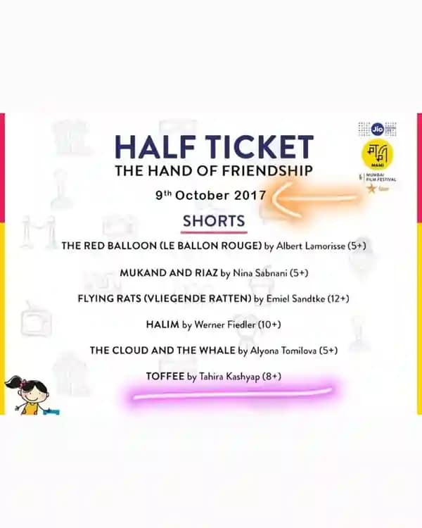 एक पूरा चक्र: ताहिरा की लघु फिल्म टॉफी को 6 साल पहले उसी तारीख को MAMI के लिए चुना गया था, जिस दिन उनकी पहली फीचर फिल्म शर्मजी जी की बेटी थी। https://www.instagram.com/p/CyPzUn2Ifob/?igshid=MzRlODBiNWFlZA