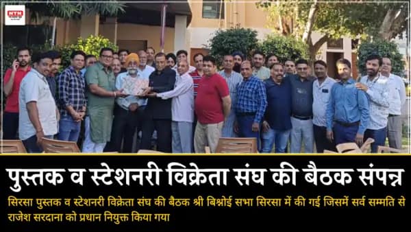 सिरसा । जिला सिरसा पुस्तक व स्टेशनरी (Stationery) विक्रेता संघ की बैठक श्री बिश्नोई सभा सिरसा में की गई जिसमें सर्व सम्मति से राजेश सरदाना को प्रधान नियुक्त किया गया जबकि भारतेंदु बंसल तथा मनु स्वामी को उप प्रधान, यशपाल भारद्वाज को महासचिव नियुक्त किया गया । सुकांत मोगा, नवनीत सेठी व सुशील कुमार गुप्ता को सहायक महासचिव, तनुज सिंगला व अशोक गुप्ता को संगठन मंत्री, राजकुमार उर्फ राजू को कोषाध्यक्ष के पद पर सर्व सम्मति से चुना गया।(Stationery)