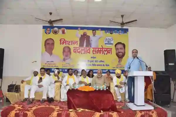 सिरसा। (सतीश बंसल ) आम आदमी पार्टी द्वारा स्थानीय कमालिया भवन में 5/08/2023 को आयोजित मिशन बदलाव सम्मेलन में पार्टी के नेताओं को सुनने के लिए बड़ी संख्या में स्थानीय लोग पहुंचे। इस सम्मेलन के माध्यम से आम आदमी पार्टी नेता प्रदीप सचदेवा अपनी राजनैतिक पारी का प्रभावशाली आगाज़ किया। सम्मेलन में पार्टी के वरिष्ठ प्रदेश उपाध्यक्ष अनुराग ढांढा ने बतौर मुख्य अतिथि शिरकत की जबकि अध्यक्षता पार्टी के प्रदेश सचिव पूर्व विधायक हरपाल सिंह भट्टी ने की। (Mission Parivartan Sammelan)