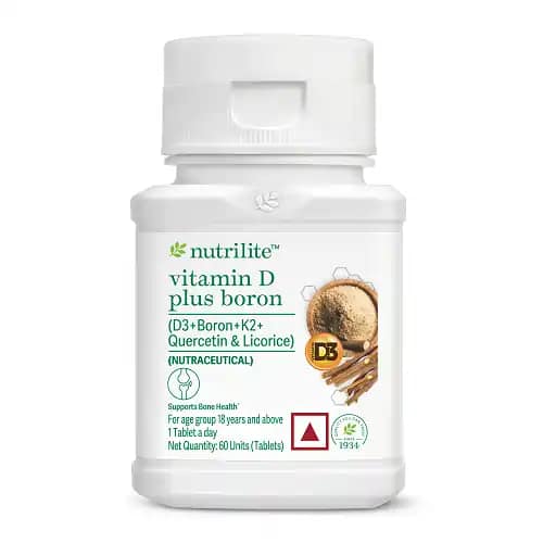 With a unique blend of Vitamin D3, Boron, Vitamin K2, Quercetin, and Licorice, Nutrilite Vitamin D plus Boron offers comprehensive support that goes beyond conventional Vitamin D supplements, helping bridge dietary gaps before they translate into health concerns. Aligned with recommended dietary allowances (RDA) and regulatory standards, it reflects Nutrilite’s commitment to empowering individuals to take charge of their health through preventive nutrition.