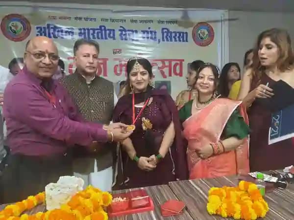 सिरसा। (सतीश बंसल)अखिल भारतीय सेवा संघ महिला शाखा सिरसा के द्वारा तीज (Teej) महोत्सव को युवक साहित्य सदन में बहुत ही धूमधाम से मनाया गया। तीज के इस महोत्सव पर भूपेश मेहता एवं गुरराज खट्टर मुख्य अतिथि के रूप में शिरकत की और अखिल भारतीय सेवा संघ के प्रांतीय अध्यक्ष इंद्र कुमार गोयल ने इस प्रोग्राम की अध्यक्षता की। प्रांतीय उपाध्यक्ष मुकेश कुमार वर्मा ने आए हुए मेहमानों का स्वागत किया और प्रोग्राम का आगाज किया।कार्यक्रम में मुख्य आकर्षक मिसेज तीज का ताज पहनने के लिए 25 महिलाओं ने भागीदारी की, जिसमें पहले कैटवॉक, परिचय और फिर एक मिनट डांस प्रतियोगिता करवाई गई और निर्णय लेने के लिए ज्योतिका मेहता और कंचन कटारिया को नियुक्त किया गया। मिस तीज के लिए लगभग 15 बच्चों ने भाग लिया, जिसमें काफी प्रतिस्पर्धा रही और मिसेज तीज में दो प्रतिभागियों अंजू खुराना और दीपिका बंसल ने समान अंक प्राप्त किए। फिर दोनों से प्रश्नोत्तरी करने के बाद अंजू खुराना को मिसेज तीज का खिताब मिला एवं हर्षा बंसल को मिस तीज का बहुत ही खिताब दिया गया।