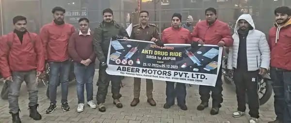 रास्ते में विभिन्न गांवों और शहरों में युवाओं से मिलकर उन्हें नशे के खिलाफ प्रेरित करेगी। राइडर डा. वरुण गोदारा ने बताया कि सिरसा क्षेत्र बॉर्डर पर होने के कारण यहां पर लगातार नशा बड़ा है, इसको लेकर पुलिस प्रशासन के साथ मिलकर हमने यह मुहिम शुरू की है। वरुण गोदारा ने कहा कि यह मुहिम केवल इस राइडिंग तक सीमित नहीं रहेगी। इसके बाद भी हम सभी राइडर मिलकर गांव और शहरों में जाकर युवाओं और नशे से ग्रसित लोगों को नशा छोडऩे के लिए प्रेरित करेंगे।