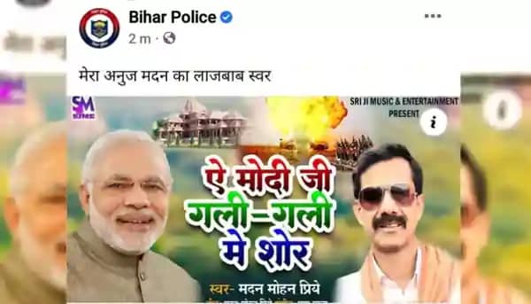 रविवार, 23 अप्रैल को बिहार पुलिस ने जाने-अनजाने में अपने ऑफिशियल फेसबुक पेज पर (PM Modi) प्रधानमंत्री नरेंद्र मोदी की तारीफ वाला एक गाना शेयर कर दिया. साझा किए गए गाने का शीर्षक था ‘ऐ मोदी जी गली गली में शोर’, जिसे मदन मोहन प्रिये ने गाया है। श्रीजी म्यूजिक एंड एंटरटेनमेंट ने इसे प्रोड्यूस किया है। पोस्ट में लिखा था, ‘मेरे छोटे भाई मदन की खूबसूरत आवाज’। हालांकि, यह गाना पीएम की तारीफ में बनाया गया था|