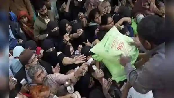आटा पाने के लिए लोगों की लंबी कतारे देखने को मिल रही है। महंगाई से परेशान पाकिस्तान के कई वीडियो इंटरनेट पर वायरल हो रहे हैं।(Inflation) जिसमें लोग आटे के लिए छीनाझपटी करते नजर आ रहे हैं। इस संकट के दौरा में बच्चों को खाता तक नहीं मिल रहा है। लोग सरकार सरकार से खफा हैं|
