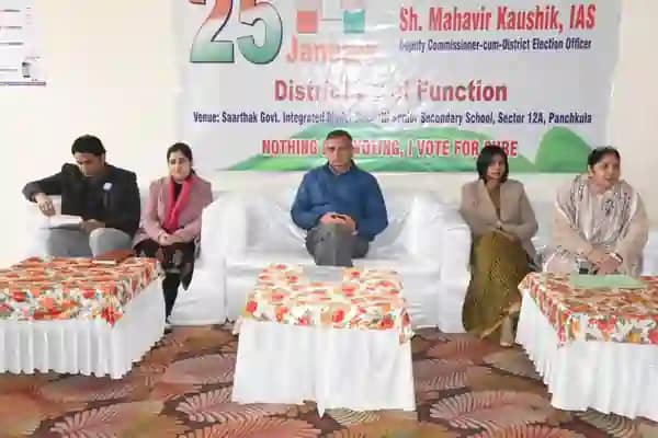 पंचकूला, 25 जनवरी- 13वें राष्ट्रीय मतदाता दिवस-2023 के अवसर पर (Program) आज सेक्टर-12ए स्थित सार्थक राजकीय आर्दश संस्कृति माॅडल वरिष्ठ माध्यमिक विद्यालय में जिला स्तरीय समारोह का आयोजन किया गया, जिसमें उपायुक्त एवं जिला निर्वाचन अधिकारी महावीर कौशिक ने मुख्यातिथि के रूप में शिरकत की। उन्होंने स्कूल के प्रांगण में दीप प्रज्जवलित कर विधिवत कार्यक्रम का शुभारंभ किया।