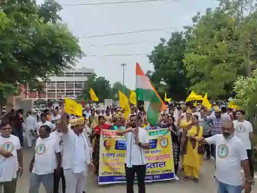 सिरसा। (सतीश बंसल) क्लेरिकल एसोसिएशन वेलफेयर सोसाइटी (सीएडब्ल्यूएस) द्वारा 35400 वेतनमान को लेकर चल रहे संघर्ष के 21वें दिन राज्य कार्यकारिणी के आह्वान पर मंगलवार को तिरंगा यात्रा निकालकर अपनी मांगों के लिए रोष प्रदर्शन किया गया। इस तिरंगा यात्रा से एक और जहां लिपिकीय वर्ग ने अपना शक्ति प्रदर्शन किया, वहीं दूसरी ओर आमजन को भी अपनी 35400 वेतनमान की मांग के बारे में अवगत करवाया। (Dharnarat Clerks)