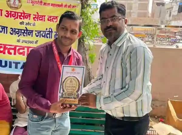 महाराजा अग्रसेन सेवा दल द्वारा सभी शहर वासियों का व मित्रों सहित रक्तदान शिविर में पहुंचने वाले सभी रक्त दाताओं का जिंन्होने मानवसेवा के इस पावन यज्ञ में अपनी आहुति डाली उन सभी का तहदिल से धन्यवाद किया | इस अवसर पर महाराजा अग्रसेन सेवादल से संरक्षक डॉ. कपिल गुप्ता,प्रधान सनी बंसल, महासचिव कुलदीप गर्ग, उपाध्यक्ष सुनील सिंगला, सचिव अशोक चाचान, सचिव अरुण सिंगला, सहकोषाध्यक्ष जानू मित्तल, कोषाध्यक्ष आशीष खजाँची उपस्थित थे | इस अवसर पर रक्तदाताओं को *रक्तवीर सम्मान*से सम्मानित भी किया गया | (Blood Donation Camp)