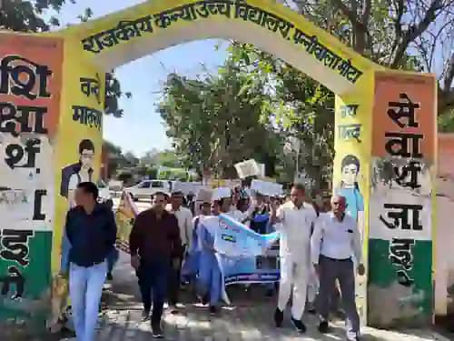 सिरसा। (सतीश बंसल) प्रवेश उत्सव के तहत पन्नीवाला मोटा एवं चोरमार खेड़ा (Door-to-Door Campaign) गांव में वीरवार को जिला शिक्षा अधिकारी आत्म प्रकाश मेहरा एवं जिला विज्ञान विशेषज्ञ डा. मुकेश कुमार द्वारा विद्यार्थियों के साथ जागरूकता रैली निकाल कर ग्रामवासियों को सरकारी स्कूल में दाखिला करवाने के लिए प्रेरित किया गया।