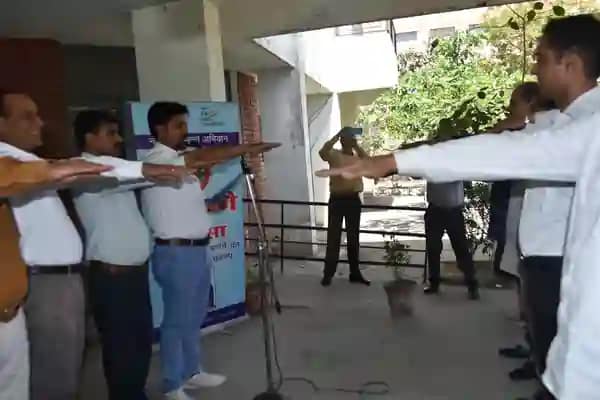 सिरसा। (सतीश बंसल) नशा मुक्त अभियान के तहत (Drug free campaign) वाणिज्य भवन स्थित कार्यालयों के अधिकारियों व कर्मचारियों ने शपथ लेते हुए नशा ना करने व जिला को नशा मुक्त बनाने में सहयोग का संकल्प लिया। शपथ ग्रहण में जिला सूचना एवं जनसंपर्क, जिला मत्स्य, महिला एवं बाल विकास, आबकारी एवं काराधान, जिला न्यायवादी सहित विभिन्न कार्यालयों के अधिकारियों व कर्मचारियों ने भाग लिया।