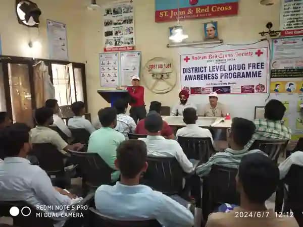 First Aid – जिला रेडक्रॉस सोसायटी द्वारा शुक्रवार को नशा मुक्ति जागरूकता अभियान के तहत स्थानीय रानियां बाजार स्थित रेडक्रॉस भवन में प्रोफेशनल प्राथमिक सहायता का प्रशिक्षण ले रहे प्रशिणार्थियों को नशे से दूर रहने व इसके शारीरिक, मानसिक व सामाजिक दुष्प्रभाव के बारे में जागरूक किया। जिला रेडक्रॉस सोसायटी सिरसा के सचिव लाल बहादुर बैनीवाल ने बताया कि जिला प्रशासन के निर्देशानुसार प्रत्येक माह के प्रथम शुक्रवार को नशा मुक्ति जागरूकता अभियान चलाए जा रहे हैं।