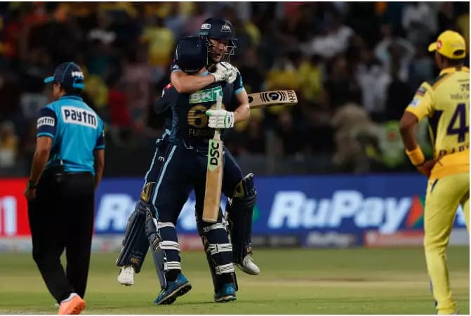 उसके बाद राशिद खान ने कप्तानी पारी खेलते हुए 21 गेंदों पर 40 रन बनाए। उन्होंने जार्डन के 18वें ओवर में 25 रन बनाकर मैच में गुजरात की वापसी करवा दी। लेकिन एक ओवर में ब्रावो ने 2 विकेट लेकर चेन्नई को दोबारा मैच में ला दिया। आखिरी ओवर में 13 रनों की दरकार थी। मिलर ने 1 गेंद पहले ये रन बना दिए। उन्होंने 94 रन की नाबाद पारी खेली।