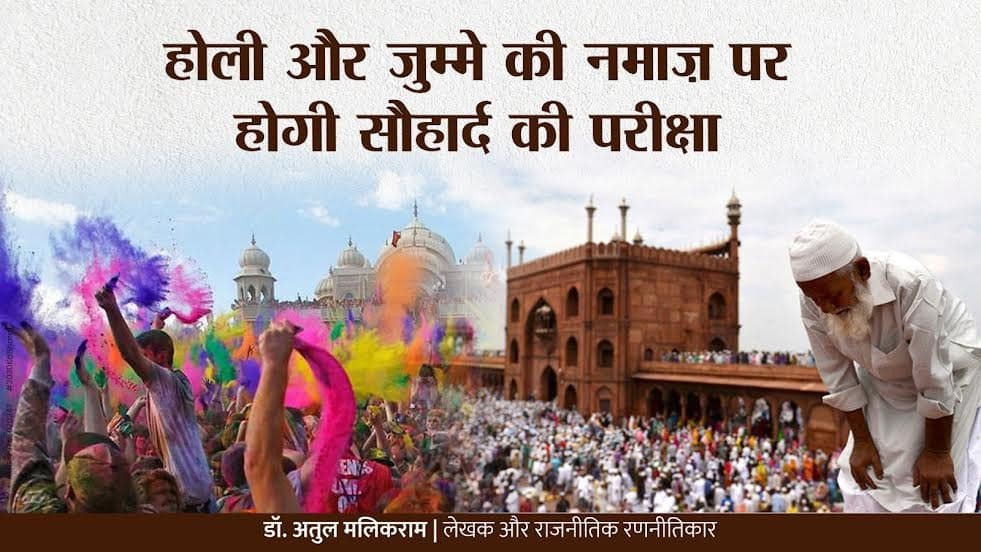 इसमें कोई दो राय नहीं कि किसी एक धर्म के अनुयायियों को दूसरे धर्म के आयोजनों में बाधा डालने का अधिकार नहीं है, लेकिन एक सच यह भी है कि हर किसी को दूसरे की आस्था का सम्मान करना ही चाहिए। होली (Holi) थोड़ी देर पहले या बाद में खेली जा सकती है, तो नमाज़ भी विशेष परिस्थितियों में कुछ समय आगे-पीछे की जा सकती है। संभल के सीओ अनुज चौधरी का यह कहना कि “अगर रंग लगने से किसी का धर्म भ्रष्ट होता है तो वे घर से न निकलें”, मेरी नजर में यह एक प्रशासनिक अधिकारी का जिम्मेदारी भरा बयान नहीं है। प्रशासन का काम समाज को तोड़ने की जगह जोड़ने का होता है। हालांकि उपरोक्त बयान समाज को जोड़ने की कोशिश करते तो नजर नहीं आते। भारत की खूबसूरती इसी में है कि यहाँ हर धर्म, हर जाति और हर विचारधारा के लोग मिल-जुलकर रहते हैं। हालांकि इस खूबसूरती में अब साल-दर-साल सौहार्द के नाम पर दाग चिपकते जा रहे हैं। जरूरत इस बात की है कि हम होली और नमाज़ के इस संयोग को टकराव की तरह न देखें, बल्कि सौहार्द के अवसर के रूप में अपनाएं। समाज के दोनों पक्षों को चाहिए कि वे एक-दूसरे की भावनाओं का सम्मान करें और ऐसा कोई कार्य न करें जिससे अशांति फैले। प्रशासन को भी ऐसी अपीलें करनी चाहिए जो मेल-जोल को बढ़ाएं, न कि विभाजन का कारण बनें। इस बार होली पर हम सभी यह प्रण लें कि कोई भी रंग आपसी प्रेम और भाईचारे से ऊपर नहीं होगा, और कोई भी इबादत इंसानियत से बड़ी नहीं होगी। (Holi)