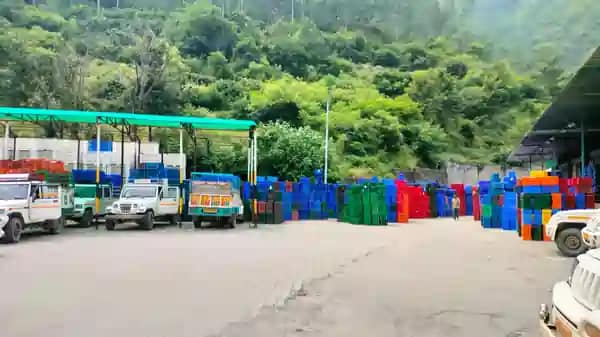 Adani Agri Fresh Limited- इस सीजन फसल कम होने के बावजूद सेब किसानों के लिए निजी कंपनियों द्वारा दी जा रही सुविधाओं की वजह से राहत बनी हुई है. अदाणी एग्री फ्रेश लिमिटेड के बाहर कतार में लगीं लोडिंग गाड़ियां