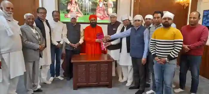 सिरसा।(सतीश बंसल) आढ़ती एसोसिएशन सिरसा के संरक्षक एवं वरिष्ठ आढ़ती वीरभान मेहता के नेतृत्व में एसोसिएशन के पदाधिकारियों ने डेरा बाबा भूमणशाह संगरसरिस्ता के गद्दीनशीन संत बाबा ब्रह्मदास महाराज से मुलाकात की और उनका आशीर्वाद लिया। वरिष्ठ आढ़ती वीरभान मेहता व आढ़ती एसोसिएशन सिरसा के प्रधान मनोहर मेहता के साथ एसोसिएशन के पदाधिकारी डेरा बाबा भूमणशाह में पहुंचे। उन्होंने वहां पहुंचने के बाद बाबा ब्रह्मदास महाराज से मुलाकात की और गुलदस्ता देकर महाराज का अभिनंदन किया। (Blessings)