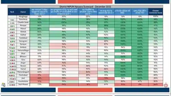 पंचकूला जनवरी 5: निपुण हरियाणा के अंतर्गत दिसम्बर माह (State Level) के राज्य स्तरीय एफ एल एन स्कोरकार्ड मे जिला पंचकूला ने उत्कृष्ट प्रदर्शन करते हुए प्रदेश भर में लगातार दूसरी बार शीर्ष स्थान बनाया है ।