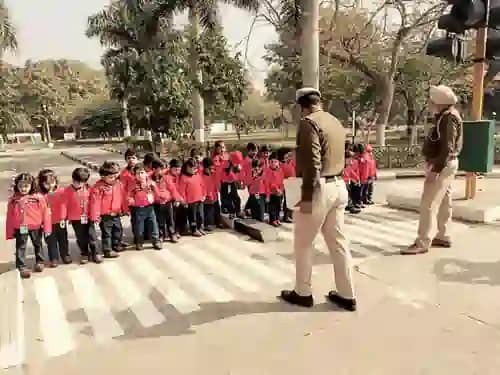 पंचकूला/04 फरवरी :- पुलिस प्रवक्ता ने जानकारी देते हुए बताया कि (Aware) पुलिस उपायुक्त पंचकूला सुमेर प्रताप सिंह के निर्देशानुसार ACP ट्रैफिक ममता सौदा के नेतृत्व में स्कूलों में ट्रैफिक नियमों के प्रति जागरुकता कार्यक्रम आयोजित करके लोगो को ट्रैफिक नियमों के प्रति जागरुक किया जा रहा इसके अलावा ट्रैफिक पुलिस पंचकूला द्वारा आज दिनांक 04 फरवरी को सेंट सोल्जर डिवाइन पब्लिक स्कूल, सेक्टर 16 मार्केट, पंचकुला स्कूल के बच्चो को ट्रैफिक पार्क सेक्टर 4 में बच्चो को ट्रैफिक जैसे सडक पार करते समय जेब्रा क्रासिंग लाईन, हेल्मेट सीट बैल्ट पहनना इत्यादि हेतु जागरुक किया गया ।