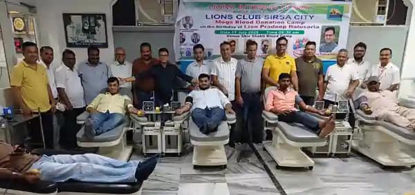 सिरसा। (सतीश बंसल)। लायंस क्लब सिरसा सिटी की ओर से वरिष्ठ भाजपा नेता प्रदीप रातुसरिया का 57वां जन्मदिन समाजसेवी कार्यों को समर्पित करते हुए पर शिव शक्ति ब्लड बैंक में रक्तदान शिविर व भंडारा लगाकर मनाया। वाइस डिस्ट्रिक गवर्नर संजय गांधी ने बताया कि सर्वप्रथम शिव शक्ति ब्लड बैंक में रक्तदान शिविर लगाया गया, जिसमें 25 लोगों ने स्वैच्छा से रक्तदान किया। इसके बाद शिव शक्ति ब्लड बैंक के बाहर ही भंडारा लगाया गया, जिसमें सैकड़ों लोगों ने प्रसाद ग्रहण किया।