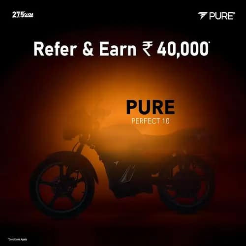 सभी मौजूदा और नए प्योर (Pure) ईवी ग्राहकों को उनके रजिस्टर्ड व्हॉट्सएप नंबर (रिकॉर्ड के अनुसार) के माध्यम से 10 यूनिक रेफरल कोड्स प्राप्त होंगे। प्रत्येक (Pure) सफल रेफरेंस के लिए रेफरर को 4,000 रुपए का कैशबैक वाउचर मिलेगा, जिसे अधिकतम दस नए खरीदार खरीद सकेंगे। रेफरल के जरिए कमाए गए कैशबैक वाउचर का इस्तेमाल भविष्य में सर्विस और स्पेयर पार्ट्स की जरूरतों के लिए किया जा सकता है। ग्राहक इनका इस्तेमाल अपग्रेड, वाहन एक्सचेंज और बैटरी एक्सचेंज ऑफर के लिए भी कर सकते हैं या रेफर किए गए दोस्त या परिवार के सदस्य की प्योर ईवी खरीद पर सीधे नकद छूट का लाभ उठा सकते हैं। (Pure)