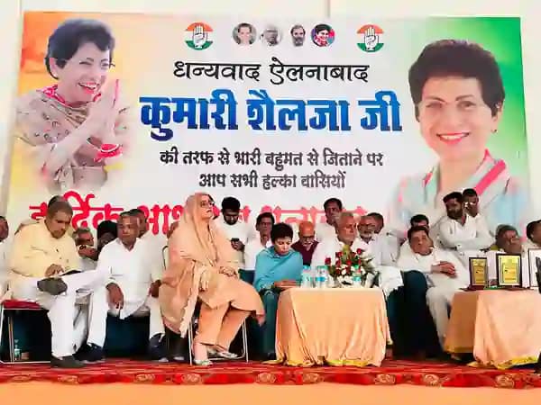सिरसा लोकसभा सीट पर रिकॉर्ड मतों से जीत हासिल करने वाली नवनिर्वाचित सांसद कुमारी सैलजा (Selja) के सम्मान में ऐलनाबाद में अभिवादन समारोह आयोजित किया गया। समारोह की अध्यक्षता पार्टी के वरिष्ठ नेताओं ने की। सर्वप्रथम संतोष बैनीवाल ने सम्मानसूचक शॉल ओढाकर नवनिर्वाचित सांसद का स्वागत किया। प्रचंड गर्मी के बावजूद उपस्थित भीड़ व कार्यकर्ताओं के उत्साह को देखकर सांसद भी गदगद नजर आई। इस मौके पर संतोष बैनीवाल ने कहा कि ऐलनाबाद परिवार ने कुमारी सैलजा को भारी मतों से जिताकर देश की सबसे बड़ी संसद में भेजा है।