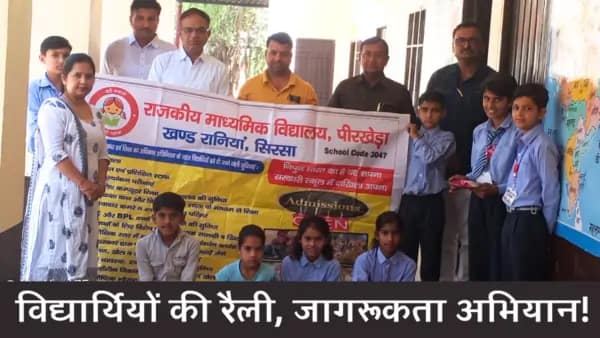 सिरसा। राजकीय माध्यमिक विद्यालय पीरखेड़ा में प्रवेश उत्सव धूमधाम से मनाया गया। विद्यालय प्रभारी सतीश कुमार ने बताया कि कक्षा छठी में प्रवेश लेने वाले विद्यार्थियों का तिलक लगाकर स्वागत किया गया। तत्पश्चात विद्यार्थियों एवं अध्यापकों द्वारा गांव में रैली निकाली गयी तथा सरकारी विद्यालय में प्राप्त होने वाली सुविधाओं से ग्रामवासियों को नारों के माध्यम से अवगत करवाया गया। ( Yogana)