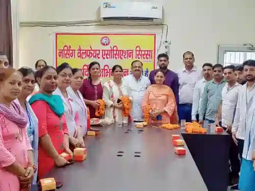 सिरसा। (सतीश बंसल) जिला नर्सिंग ऑफिसर यूनियन की एक मीटिंग (Nursing) जिला नागरिक अस्पताल के ट्रेनिंग सेंटर में हुई। मीटिंग में बतौर मुख्यातिथि नर्सिंग ऑफिसर की राज्य प्रधान विनिता अपनी टीम के साथ पहुंची। उनके साथ राज्य उपप्रधान विकास यादव, फाऊंडर मेंबर सुशीला कौशिक, महासचिव योगेश शर्मा व यूनियन सदस्य हेल्सन, संतोष जाखड़ व संदीप भी मौजूद रहे। जिला प्रधान राजकुमार भारद्वाज व उनकी टीम ने उनका सिरसा पहुंचने पर फूल मालाओं से स्वागत किया।
