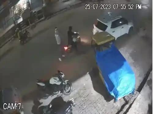 मंगलवार की शाम करीब 8 बजे चार बदमाश दो बाइकों पर सवार होकर आए और दुकान के काउंटर पर 50 लाख रुपये की रंगदारी की चिठ्ठी रखकर चले गए. घटना की सीसीटीवी फुटेज में बाइक पर सवार चार बदमाश दिखाई दे रहे हैं. इनमें से एक नकाबपोश बदमाश बाइक से उतरकार सीधा दुकान में जाता है और बिना कुछ कहे चिठ्ठी रखकर वापस आ जाता है. उसके बाद उसने अपनी पिस्टल निकाली और फायर कर दिया. फायरिंग होते ही बाजार में अफरा- तफरी मच गई| (Alwar)
