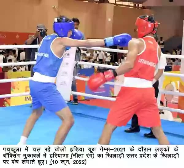 पंचकूला, 10 जून – कुश्ती की ही तरह बॉक्सिंग (boxing) भी हरियाणा का पसंदीदा खेल माना जाता है और ऐसी उम्मीद भी जताई जा रही थी कि खेलो इंडिया यूथ गेम्स – 2021 के दौरान होने वाली बॉक्सिंग प्रतियोगिताओं में हरियाणा अन्य टीमों पर हावी रह सकता हैै। इन उम्मीदों पर खरा उतरते हुए हरियाणा के खिलाड़ियों ने अपनी जीत का सफर जारी रखा है। शुक्रवार को अलग-अलग भार वर्ग में हुए लड़कों के बॉक्सिंग मुकाबलों में छोरों ने जीत दर्ज कर बढ़त बनाई है। आशा है कि हरियाणा बॉक्सिंग में अधिक से अधिक पदक जीतकर पदक तालिका में शीर्ष पर काबिज रहेगा।