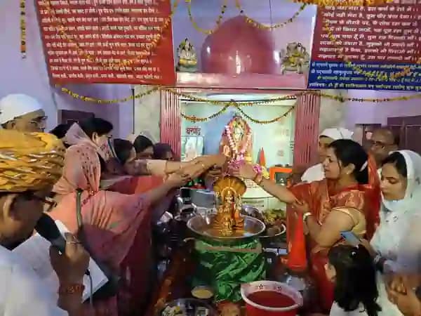 डबवाली रोड पर एयर फोर्स के नजदीक स्थित माता श्री पद्मावती (Maa Padmavati) धाम में प्रेम सरावगी के कर कमलों से ध्वजारोहण किया गया और विश्व शांति हवन हुआ। तत्पश्चात माता श्री पद्मावती का दूध केसर जल से अभिषेक संपन्न हुआ और इसके बाद दानवीर सेठ कैलाश चंद सीघांची सपरिवार व अन्य सुहागिनों द्वारा माता का 16 श्रृंगार किया। धाम के प्रवक्ता मानकचंद जैन ने बताया कि धाम के संस्थापक संत दीप सागर जी महाराज की अस्थियां 2 फुट गहराई में भूमिगत करके एक कलश में स्थापित की गई एवं उसके ऊपर मार्बल का चबूतरा निर्माण कर चरण स्थापित किए गए।