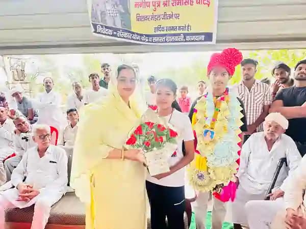योग (Yoga) की राष्ट्रीय स्तर की प्रतियोगिता में गांव कागदाना निवासी मनीष पुत्र रामसिंह घोटड़ द्वारा सिल्वर मेडल जीतने की खुशी में गांव में सम्मान समारोह आयोजित किया गया, जिसमें सरपंच एसोसिएशन की प्रदेश उपाध्यक्ष व महिला प्रदेश कांग्रेस महासचिव संतोष बैनीवाल ने बतौर मुख्यातिथि शिरकत की। ग्रामीणों ने संतोष बैनीवाल का फूल मालाओं से जोरदार स्वागत किया। इस मौके पर संतोष बैनीवाल ने कहा कि ग्रामीण क्षेत्रों में प्रतिभाओं की कमी नहीं है, जरूरत है तो उन्हें सही दिशा व मार्गदर्शन की।